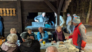 Am 15. November ab 11 Uhr fand unser diesjähriges Glühweinboulen statt. Da die Wetterprognosen auch Regen versprochen hatten, war ein Pavillon über dem Kaffee-Tisch und eine LKW-Plane als Dach über dem Grill aufgebaut worden. Aber der Wettergott war uns wohlgesonnen, bis auf ein paar Tropfen bei der Vorbereitung blieb es trocken.