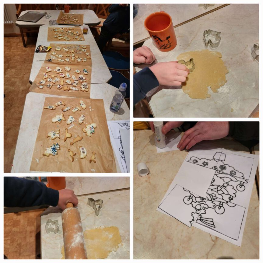 Am Nikolaustag haben die Kinder sich in die Weihnachtsbäckerei begeben. Es wurde fleißig Keksteig ausgerollt, ausgestochen und selbstverständlich musste auch vom Teig genascht werden. Das fachmännische Urteil von Tim lautete „vorzüglich“. Die Kekse wurden mit klassischen Formen wie Weihnachtsbäume, Sterne und Herzen, aber auch mit Elchen ausgestochen. Es sind einige Bleche an Keksen zusammengekommen. Beim Backen der Kekse verteilte sich der Duft auf dem Campingplatz und lockte die neugierigen Erwachsenen an. Die Kekse konnten aber vorerst verteidigt werden. Während die Kekse auskühlten begann die Schnitzeljagd auf Senneriffa. Es galt verschiedene Stationen mit Puzzleteilen zu finden. Nachdem alle Teile gemeinsam gefunden wurden, wurden diese bei einem Kinderpunsch zu einem Weihnachtsbaum zum Ausmalen zusammengefügt.